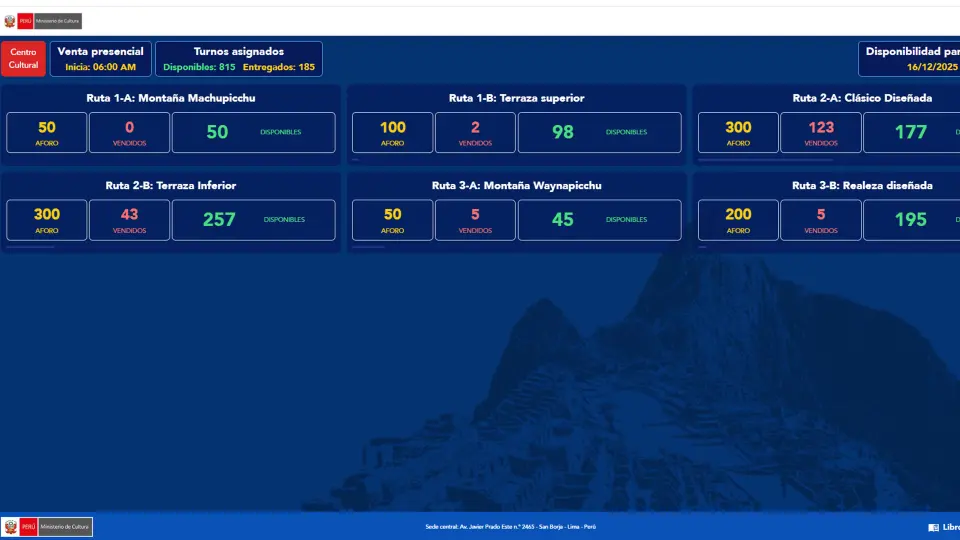 sin embargo la venta en linea para el 2026, para temporada alta (Mayo – Setiembre) los cupos ya se van agotando especiamente el circuito de mayor demanda circuito 2.