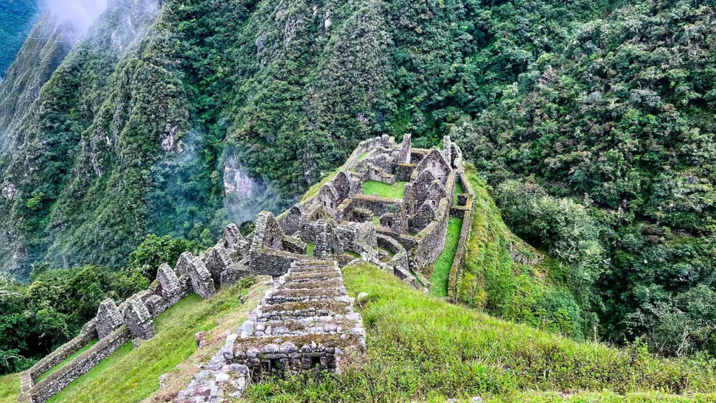 Por otro lado, el Camino Inca Corto se puede completar en 2 días o, para aquellos con agendas más apretadas, en sólo 1 día. Esta caminata cubre aproximadamente 12 km (7,4 millas), con un tiempo promedio de caminata de 6 a 7 horas. El recorrido comienza en el km 104 y es ideal para quienes disponen de poco tiempo o prefieren una caminata menos exigente. A pesar de su corta duración, disfrutará de vistas impresionantes y visitará lugares arqueológicos clave como Chachabamba, Wiñaywayna y la Puerta del Sol. Tras la caminata, pasará la noche en la hermosa ciudad de Aguas Calientes. El nivel de dificultad es moderado, por lo que es apto para la mayoría de los excursionistas.