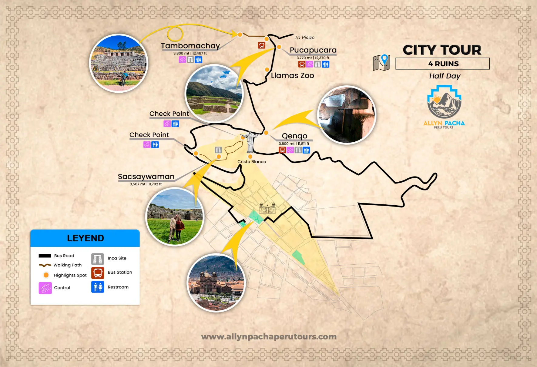 Experience a fascinating journey through time with our City Tour 4 Ruins, an essential half-day tour that takes you to four of the most iconic archaeological sites near Cusco City. Perfect for travelers looking to immerse themselves in Andean history and culture, this guided tour provides a seamless introduction to the wonders of the Inca Empire while helping you acclimate to the high altitude of the Andes.