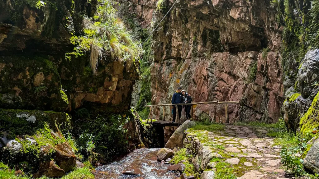 After descending from the Siwar Pass, the journey continues through the ancient and picturesque village of Pucamarca that is 15 minutes away, offering an ideal spot for a short rest. Following this pause, you’ll continue your Huchuy Qosqo trek along beautifully restored sections of the original Inca Trail. Immerse yourself in the wonders of the impressive Puma Punku canyon (“The Puma Gate”), an extraordinary natural landmark that showcases the incredible ingenuity and rich cultural heritage of Inca civilization.
