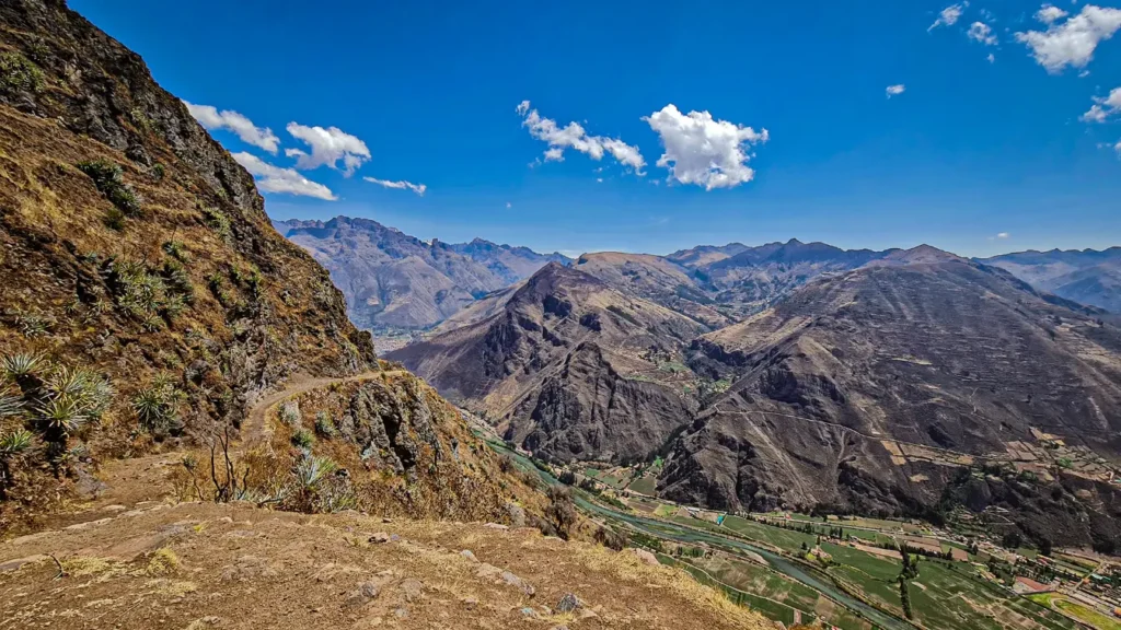 After immersing yourself in the wonders of Huchuy Qosqo and enjoying a relaxing box lunch surrounded by serene natural beauty, you’ll begin a leisurely 2-hour descent along scenic trails. These lush valleys are abundant with vibrant tarwi flowers, small native cacti, and beautiful Queñua trees, guiding you gently towards the charming village of Lamay (2,941 m / 9648 ft), located alongside the tranquil Urubamba River.